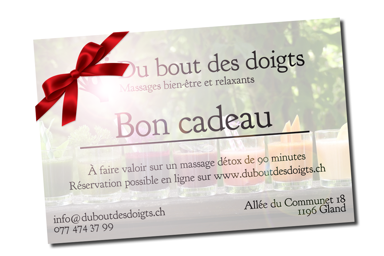 À la fin de chaque massage, vous pourrez profiter calmement de boire un jus détox de saison.